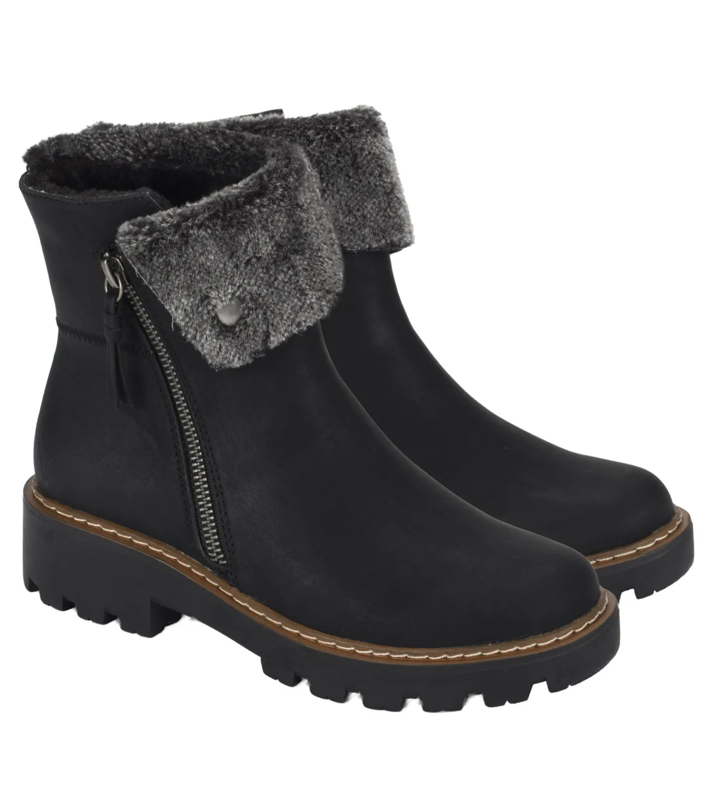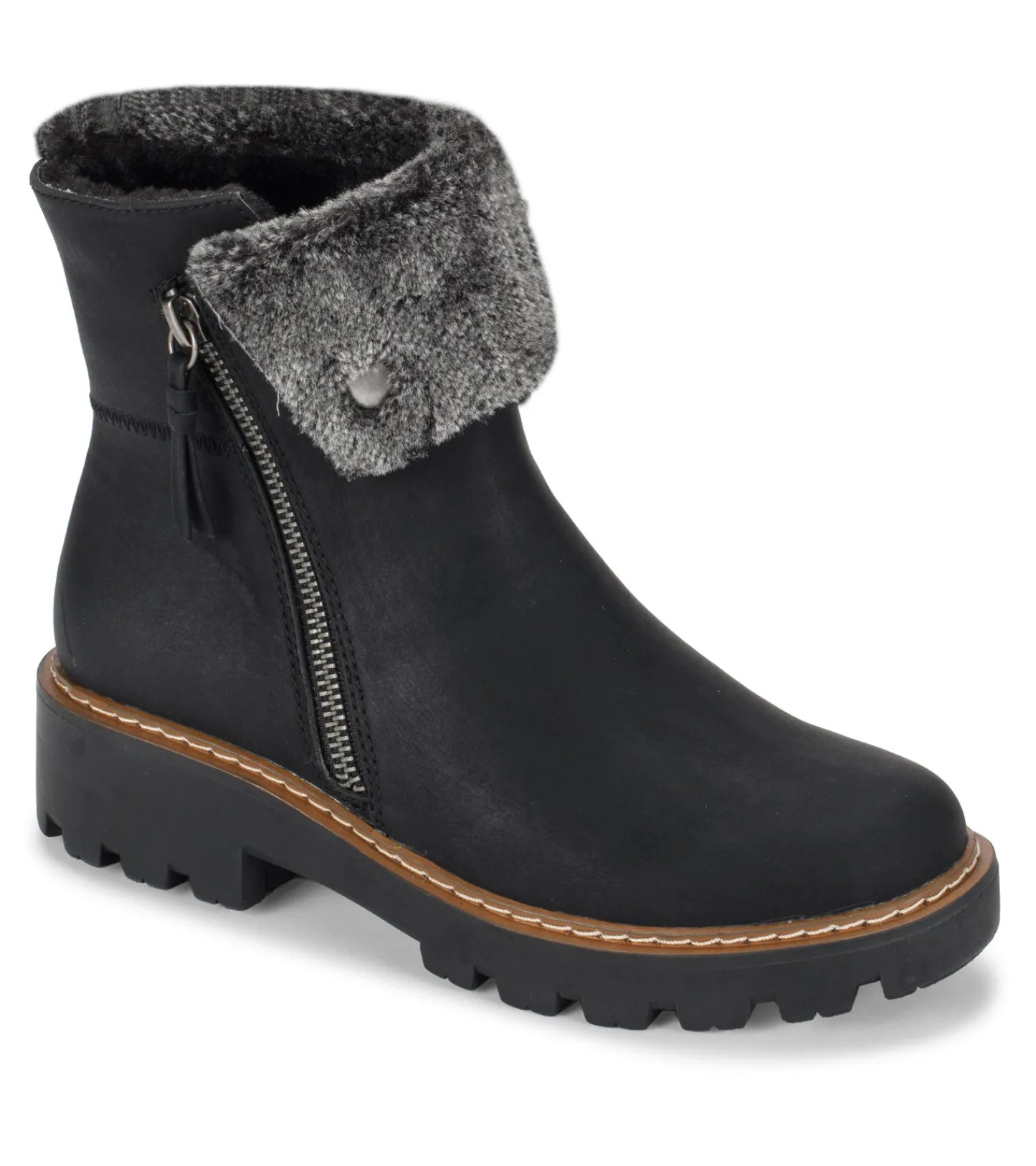The Baretraps Westry boot has a cozy style that will keep you warm during the cold months. Cute accents like a asymmetrical faux fur cuff, man-made upper and a lug styling with a cushioned insole will keep you comfortable all day.