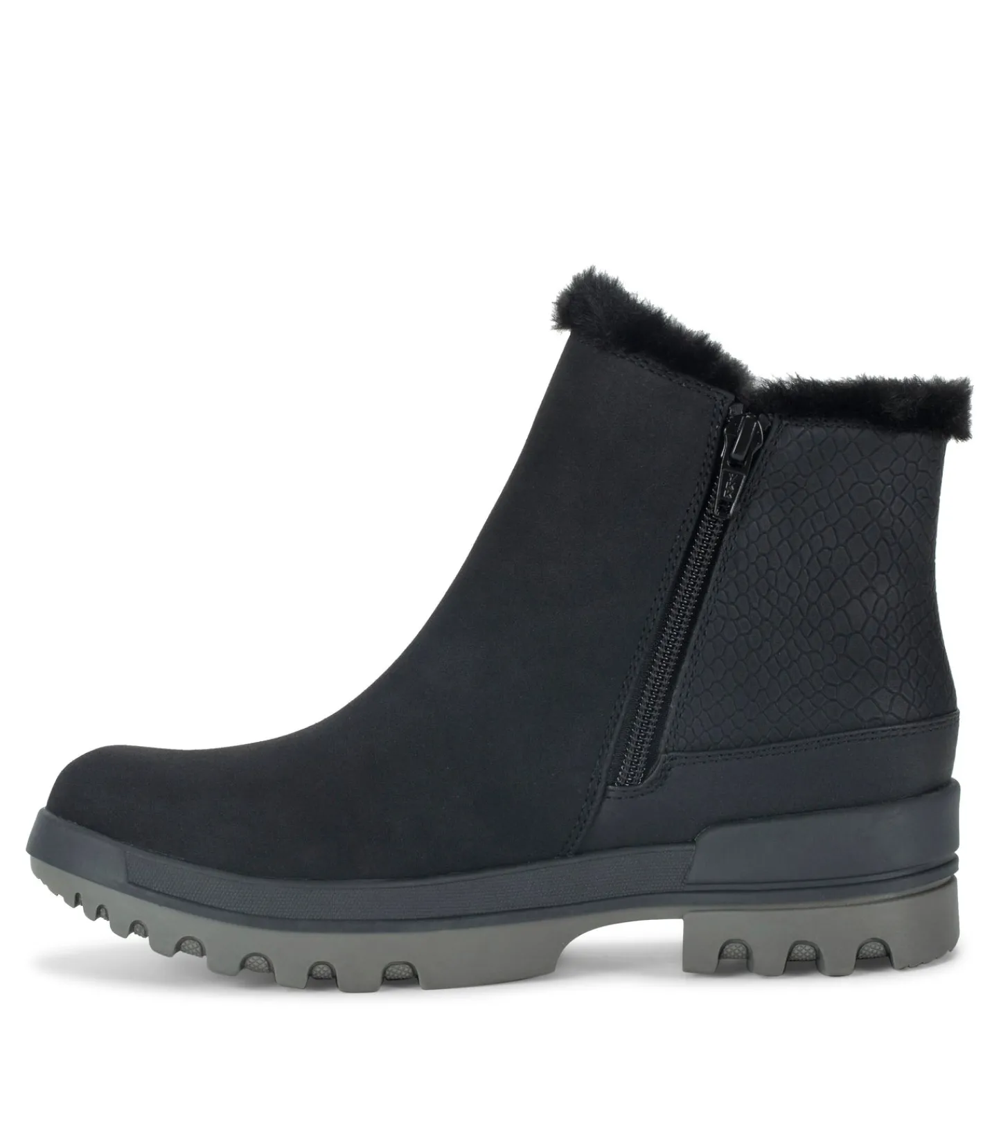 Stay warm when the weather turns unpredictable with the Baretraps Noemi Cold Weather Boot. Crafted with a synthetic upper and cozy faux shearling lining, this boot is designed to keep you warm and dry no matter the weather. Weatherproof technology creates a weatherproof barrier, shielding your feet from the elements.The treaded sole provides superior traction, ensuring a steady stride even on slippery surfaces. Meanwhile, the soft, cushioned interior lining envelops your feet in comfort, allowing you to tackle the chill with ease. The ankle-high design offers additional support and coverage, while the interior side zipper allows for easy on and off.Whether you’re navigating snow-covered sidewalks or braving blustery winds, the Baretraps Noemi Boot is your reliable companion. Experience the perfect balance of style, function, and comfort, and conquer the cold weather in confidence.