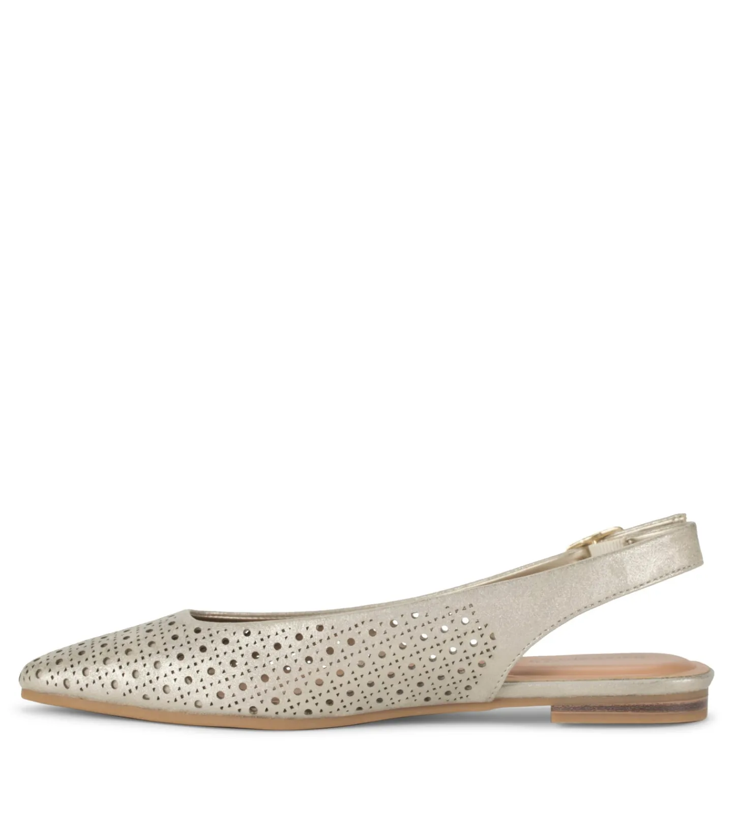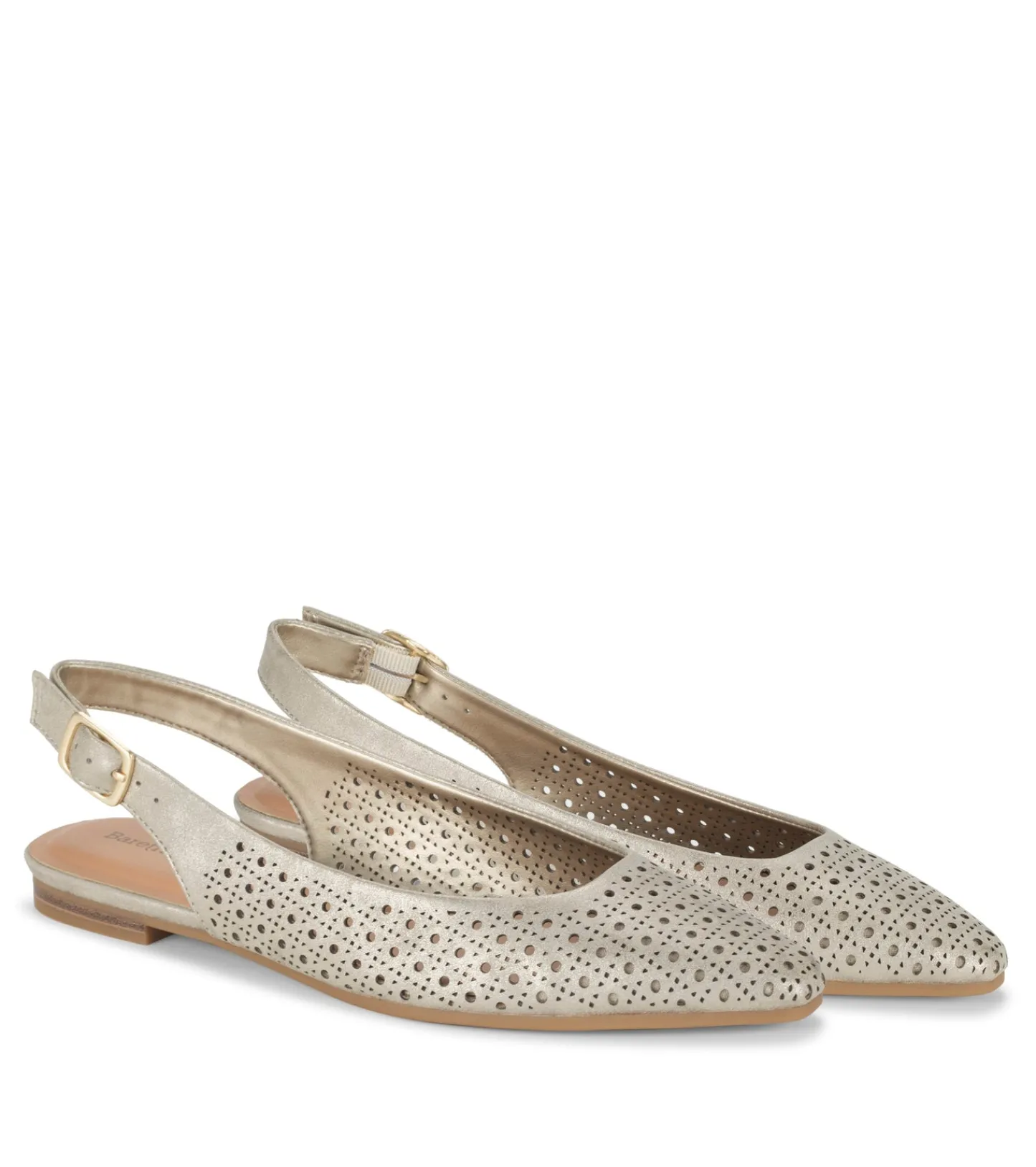 Triple your fun with the Baretraps Riva pointed toe slingback. A tailored style that combines three of our favorite shoe elements. It starts with the pointed toe, which creates an elongated silhouette on which intricate laser-cut perforations shine. Adding to the streamlined look, the flat rubber sole with ½ inch-heel provides stability and flexibility. A slingback strap with buckle closure is a classy touch and makes for a snug fit. Revel in the comfort of hundreds of form-fitting bubbles that make up the soft and responsive Bubble Tech so these shoes can do the double duty of a workday and date night.
