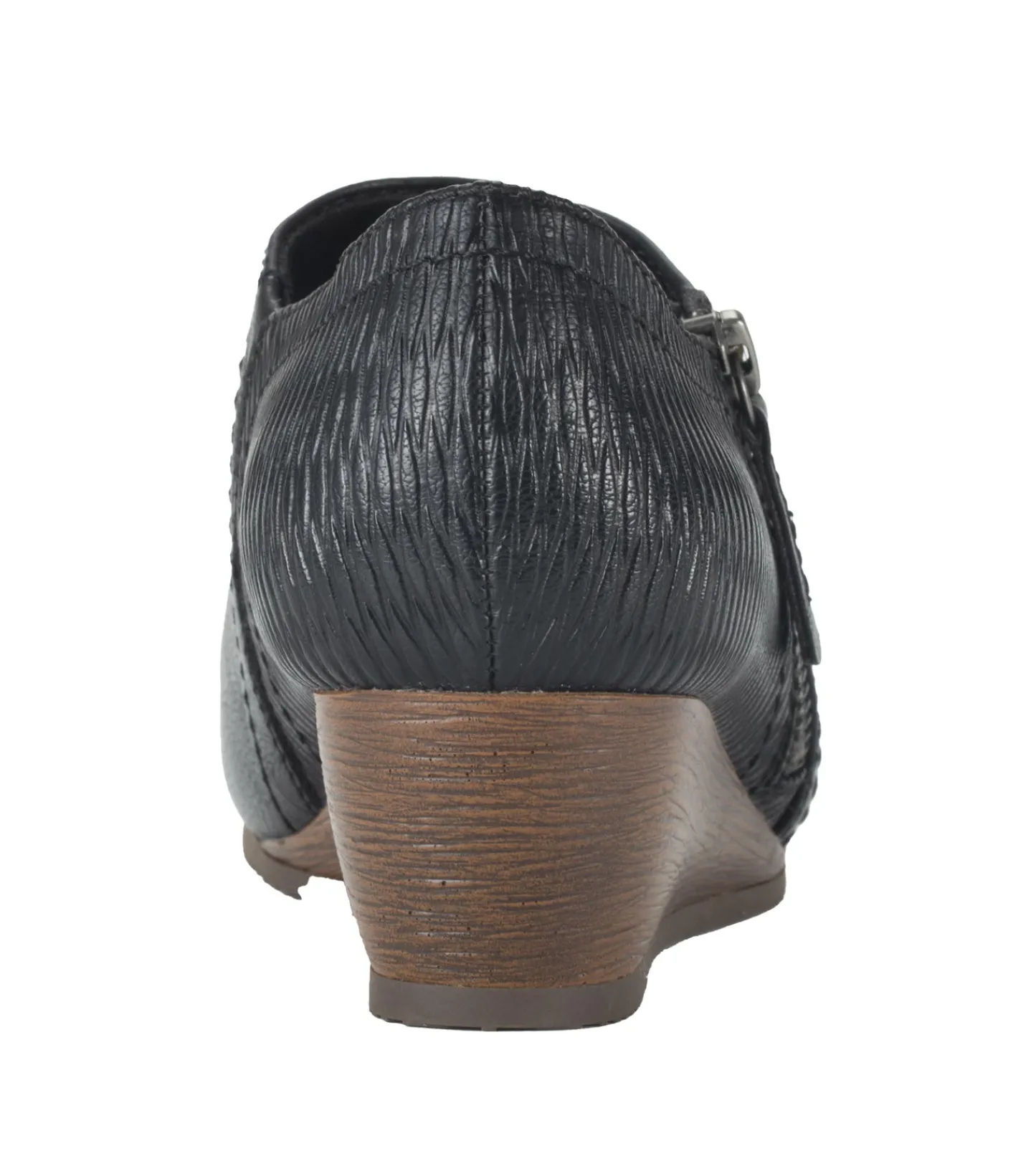 As long sunny days turn into brisk jacket weather, your footwear must also transition. By marrying a mule with a boot, we’ve created the perfect shoulder season go-between. Running errands or walking the dog are easy with the Baretraps Louise Ankle Bootie that features a secure fit thanks to the full-heel and side-zipper closure. Ergonomic design and support are the result of the wedge sole, which also boosts Louise’s effortless style—especially when you wear them with smart casual attire that’s as multipurpose as these shoes.