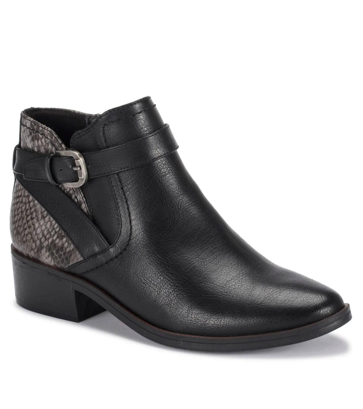 The Baretraps Maci low ankle bootie is sure to make a fashion statement in any outfit. The stylish cross-latch metal buckle is paired with our industry leading comfort insoles that will keep you snug and feeling good all day!