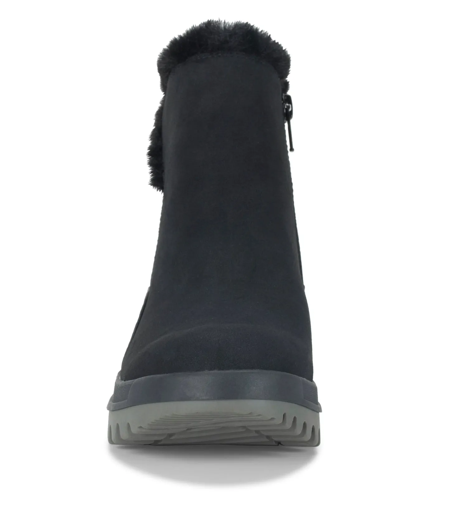 Stay warm when the weather turns unpredictable with the Baretraps Noemi Cold Weather Boot. Crafted with a synthetic upper and cozy faux shearling lining, this boot is designed to keep you warm and dry no matter the weather. Weatherproof technology creates a weatherproof barrier, shielding your feet from the elements.The treaded sole provides superior traction, ensuring a steady stride even on slippery surfaces. Meanwhile, the soft, cushioned interior lining envelops your feet in comfort, allowing you to tackle the chill with ease. The ankle-high design offers additional support and coverage, while the interior side zipper allows for easy on and off.Whether you’re navigating snow-covered sidewalks or braving blustery winds, the Baretraps Noemi Boot is your reliable companion. Experience the perfect balance of style, function, and comfort, and conquer the cold weather in confidence.