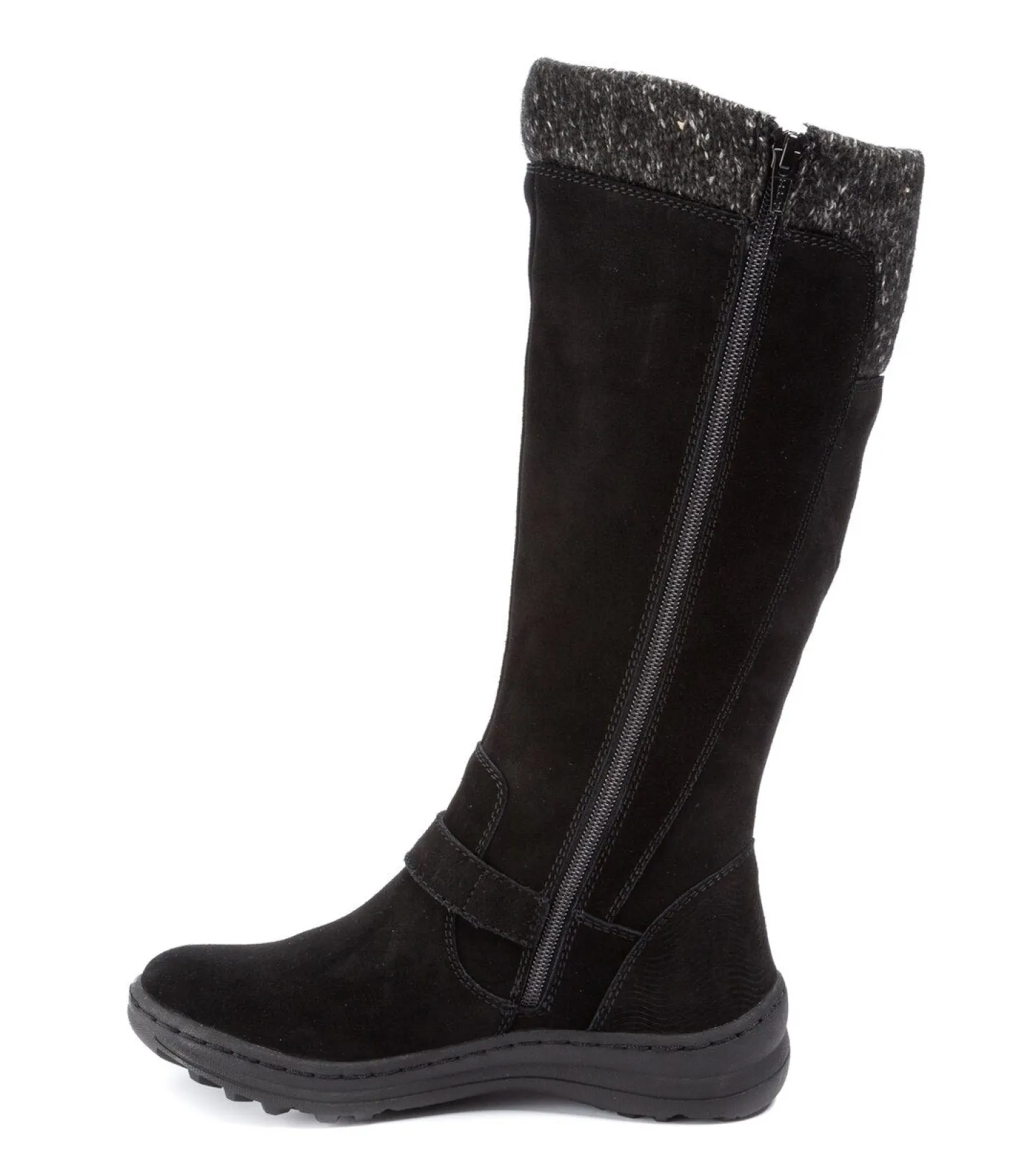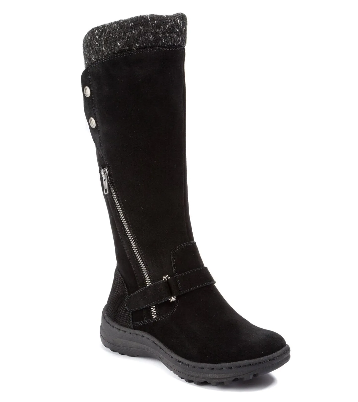 Cozy vibes are yours in the Adele Cold Weather Boot from Baretraps! This functional boot is full of comfort features to keep you moving when the conditions get harsh. Weatherproof Technology is water resistant to help keep your feed dry. The style factor is high with an exposed zipper, buckle and button details, and an adorable sweater cuff. The substantial sole is slip resistant to keep you steady no matter what the weather report says.